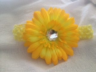 Super cute yellow gerbera flower on a soft crochet headband.