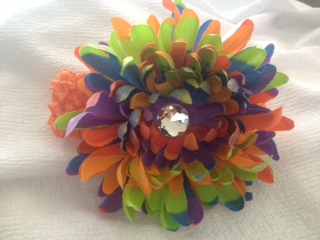 Orange crochet headband adorned with vibrant colorful eye candy!