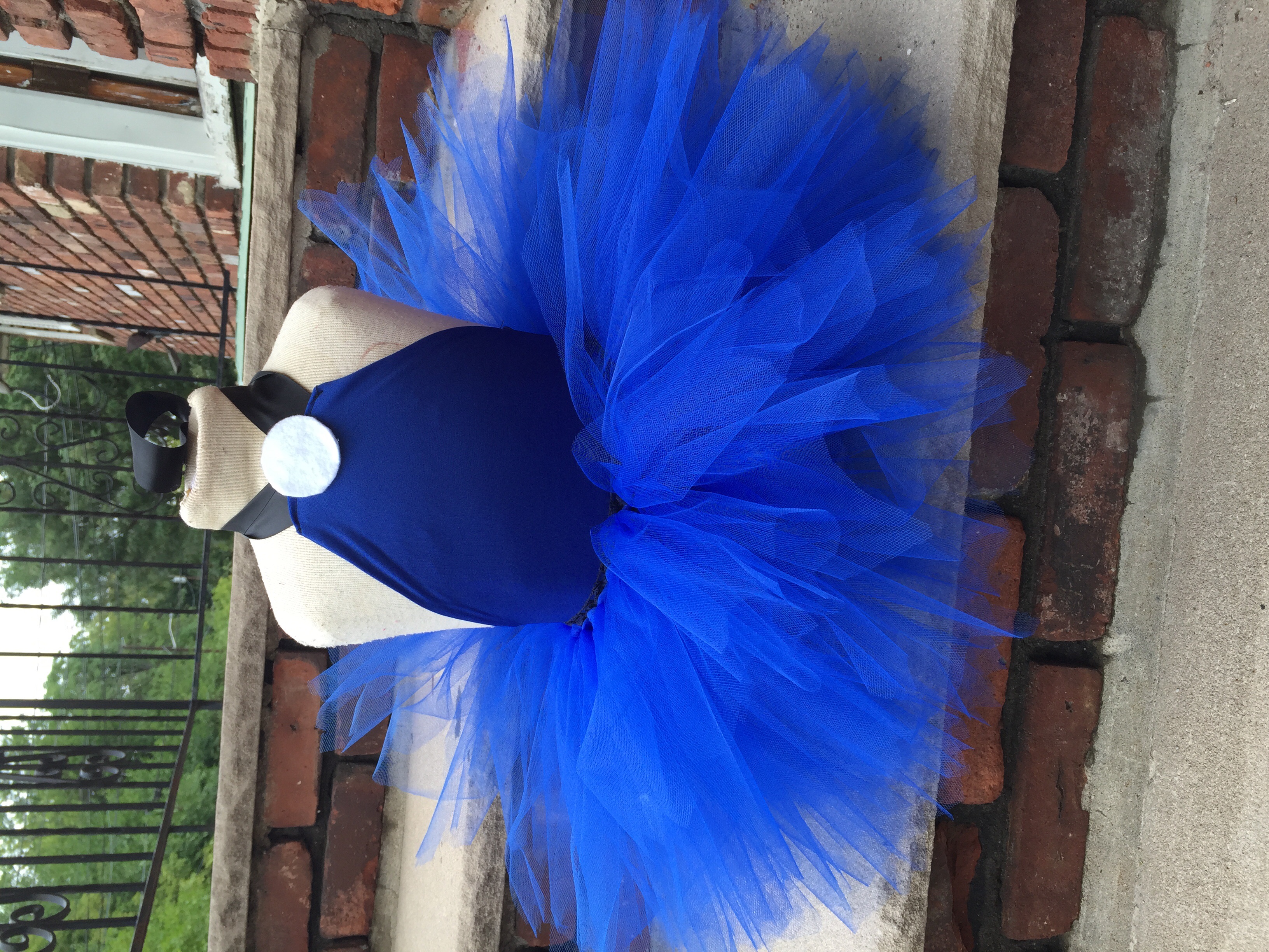 Betty Rubble tutu skirt is detachable. Shirt is handmade stretch fabric adorned with white center as "necklace".
