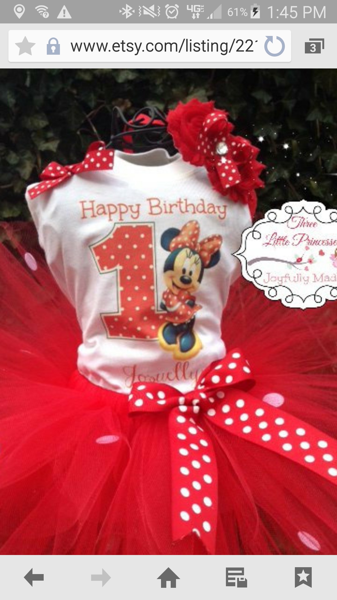 24 months short sleeve one piece Tutu 19"-8" length Minnie Mouse Red with white polka dots Minnie with number 2. Name: Daniella