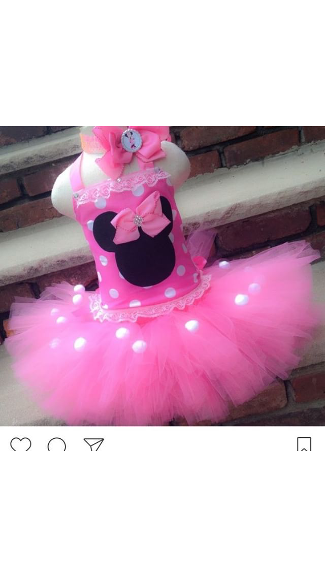 The Minnie Mouse 18mth Polka dot bodice top with pink lace tutu shocking pink 8" with polka dot white matching headband minnie mouse