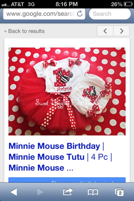 Minnie mouse9-12mths Emma Adele and Minnie Mouse in rhinestones Long sleeve onesie w number 1 on it in red w white polka dots Tutu 7 -8" Tutu color- red Red w white polka dots ribbon